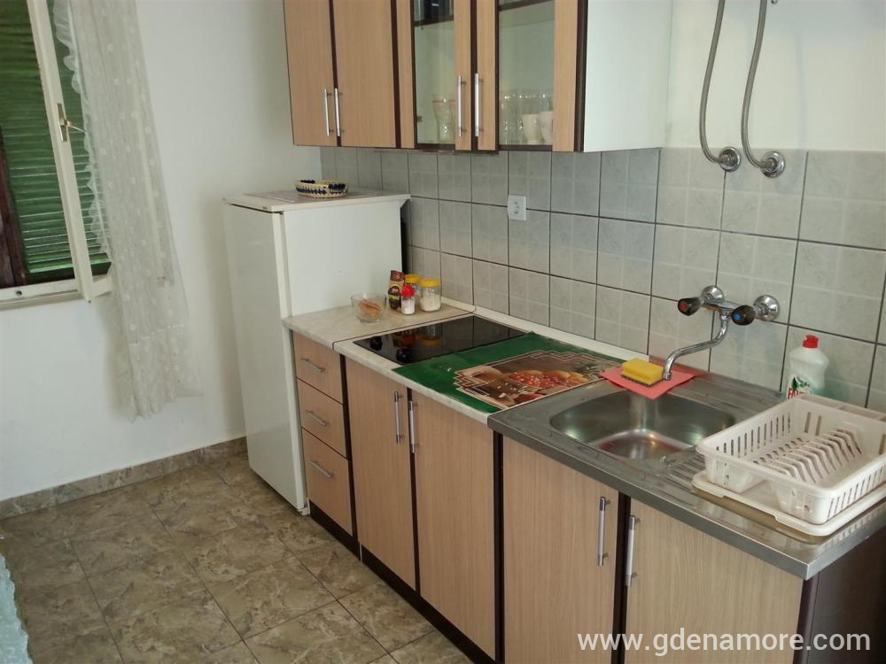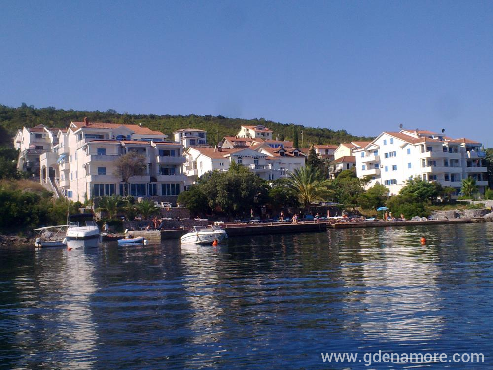 Novo izgradjen,67m2 komplet opremljen apartman,sa dve spavace sobe.U jednoj sobi nalazi se bracni krevet,a u drugoj su dva kreveta samca.Veliki dnevni boravak sa krevetom za dve osobe.Kuhinja komplet opremljena.Kupatilo sa tus kabinom.Velika terasa sa pogledom na more i jedna manja sa druge stran...